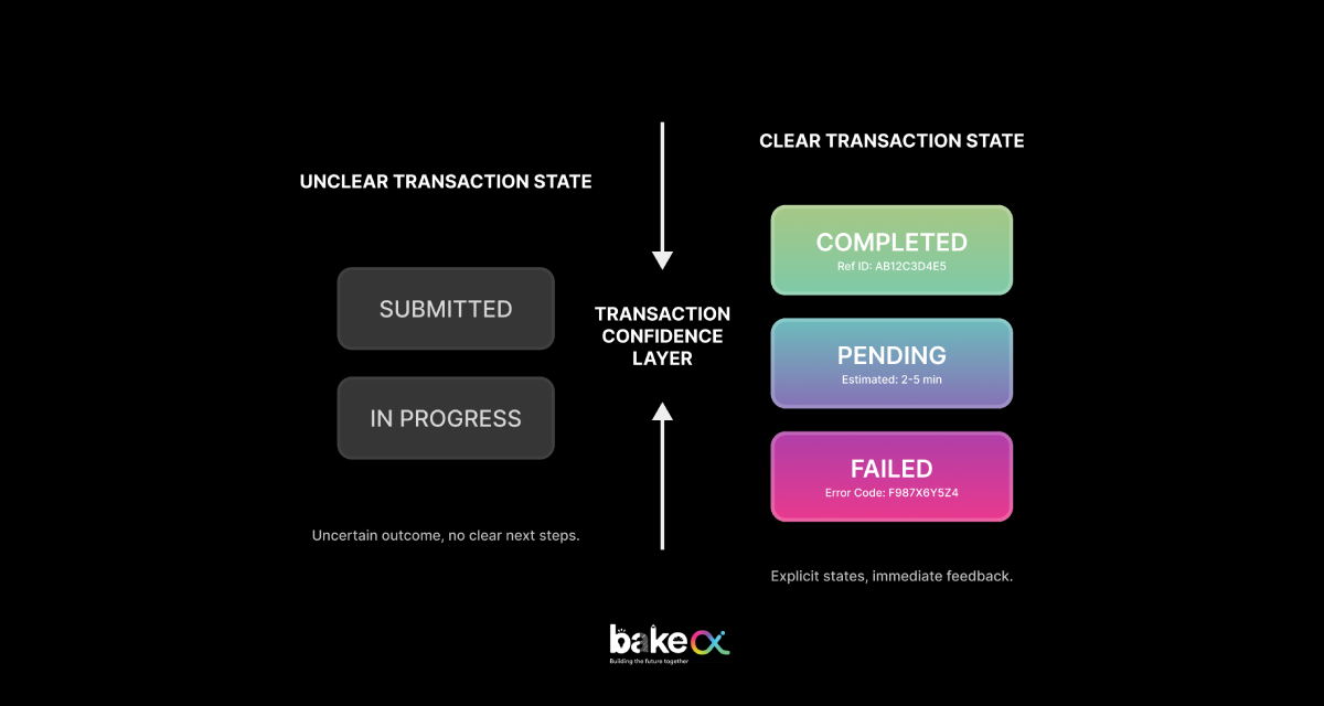 Across financial platforms reviewed by BakeCX, transaction uncertainty consistently appears as a primary trust-leak trigger — even when backend systems function correctly.